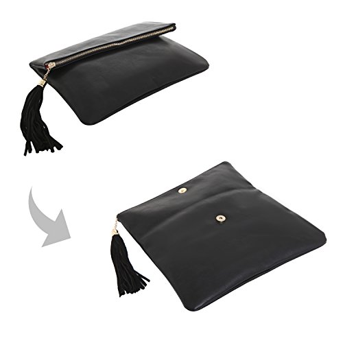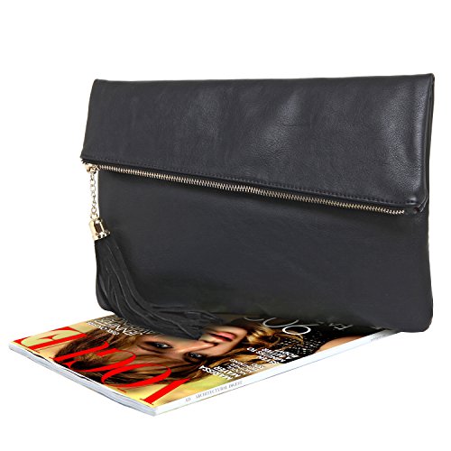 Studio : MyGift Publisher : MyGift Product Description Whether you're heading to work or going out on the town, this stylish clutch is a great addition to any outfit. Made of stylish leatherette, this fashion purse features a foldover flap with a assymetrical edge that brings you right to the forefront of fashion. Unfold the flap and unzip the opening on the flap's edge, and you'll find a fabric-lined interior with 2 slip pockets and 1 zippered pocket to help keep your belongings organized. You'll also find another zippered pocket on the outside of this bag for additional storage. When you're ready to hit the road, just take this purse in hand or under your arm to bring style along wherever you go. **Official MyGift® product.** Approximate Dimensions (in inches): Exterior - 13 W X 9 H X 1.25 D; Interior - 12.25 W X 8.5 H X 1 D. 0 |