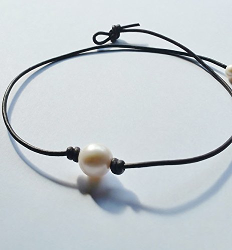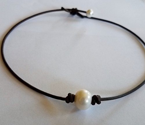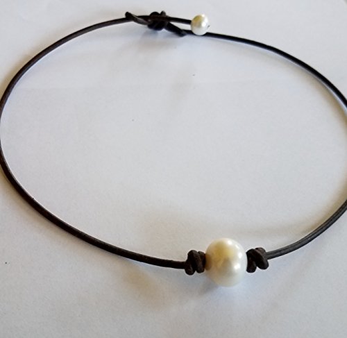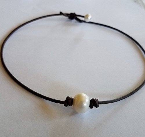 Beautiful Freshwater Pearl necklace and genuine leather. Black, 17 inches, any length available on request. 11mm-14mm round pearl. Very hard to find. Leather is AAA quality.Feature