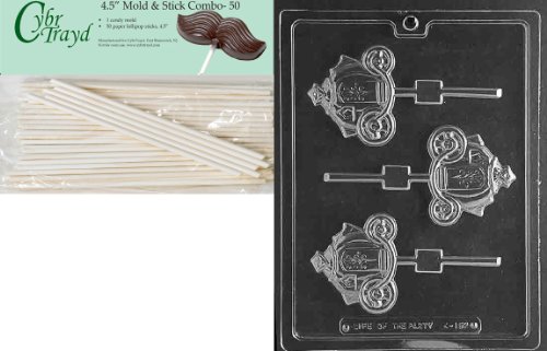 Cybrtrayd 45St50-K152 Pumpkin Coach Lolly Kids Chocolate Candy Mold with 50 Cybrtrayd 4.5-Inch Lollipop Sticks