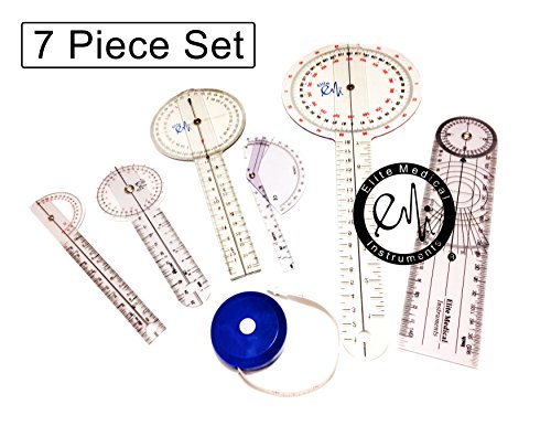 EMI 6 Piece Goniometer Set Plus Measuring Tape - 7 Pieces Total EGM-431