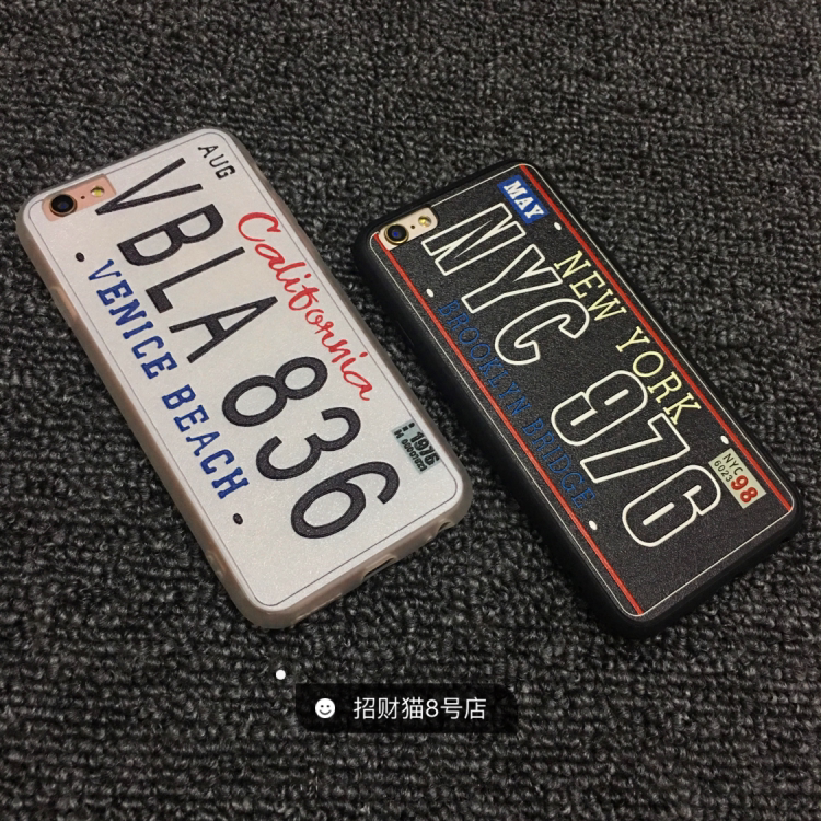 原创欧美车牌iPhone6手机壳苹果6plus新款情侣个性保护全包挂绳套