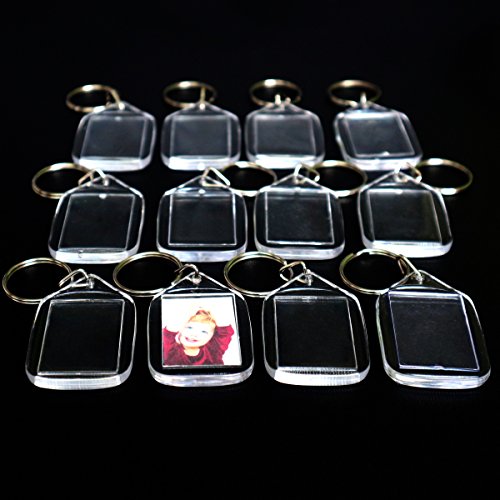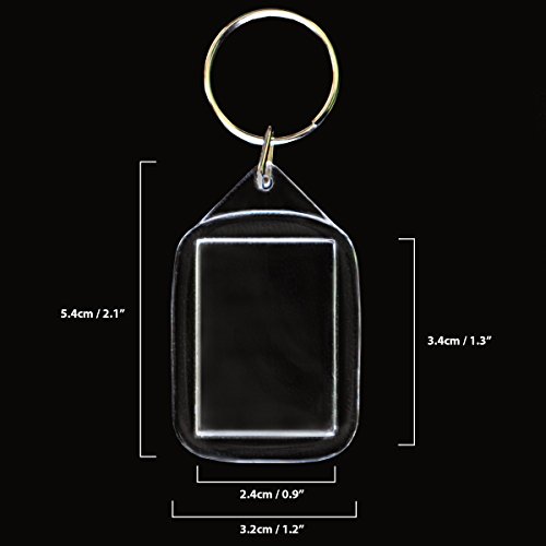 DETAILS AND MEASUREMENTS - Each keyring is made from high quality durable acrylic plastic with metal rings which enhances photographs. The key chains measure 5.4cm (2.1 inch) x 3.2cm (1.2 inch) and holds photos measuring 3.4cm (1.3 inch) x 2.4cm (0.9 inch).