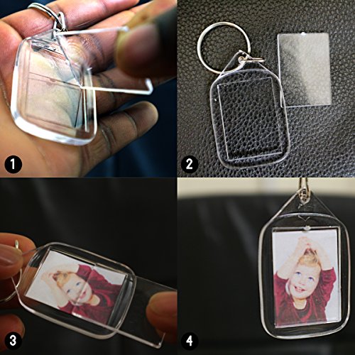 BEAUTIFULLY DESIGNED - The Key rings remain clear on both sides. Simply remove the clear casing panel, insert your photo and then clip the panel back into place. You can insert 2 images as they are clear on both side.