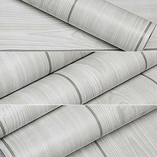 SimpleLife4U Grey Wood Grain Self-Adhesive Shelf Drawer Liner PVC Contact Paper 45x300cm Valentine's Day Gift