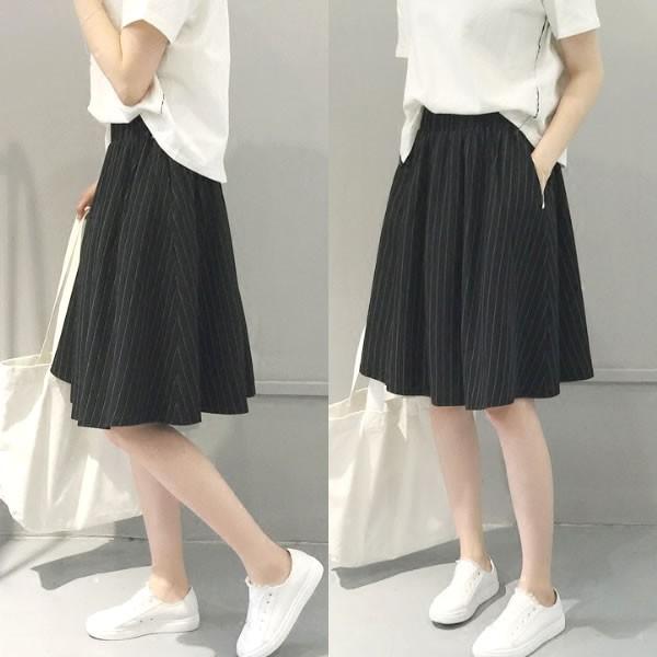| ストライプ柄 フレアスカート ミディアム丈 スカート 黒 ブラック 総柄 【スカート レディース 女性 黒 Black ミディアム丈 スカート フレア ボトムス スカート 通勤 コーデ ストライプ stripe スカート size mini】 | |