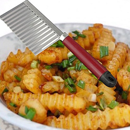 -. Feature : Suits for hand-made potato chips, vegetables or melon slices! / Great for making fancy edges and waffle cuts on various fruits and vegetables! / Blade Potato Vegetable Carrot Crinkle Wavy Cutter Slicer Stainless Knife / Size: 22cm X 6cm/2.4 x 8.6in / Material: Stainless Steel and Plastic Handle
