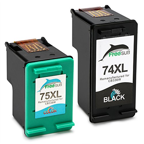 FreeSUB 1 Black+1 Tri-Color Remanufactured Ink Cartridge Replacement For HP 74XL 75XL High Yield For HP Deskjet D4260 D4360 Officejet J5725 J6405 Photosmart C4280 C4385 C4480 C4580 C5280 C5580 D5360