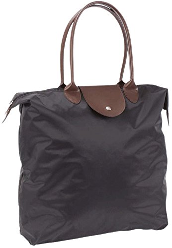 -. Brand : Simple Travel Tote -. Color : Brown -. Department : mens -. EAN : 0702219362558 -. Feature : Zippered Main Compartment / Faux Leather Snap Closure / Faux Leather Carrying Straps / Measures 19" x 16" x 4-1/8" / Features zippered main compartment with faux leather snap closure, faux leather carrying straps and zipper tabs. -. ProductGroup : Apparel -. ProductTypeName : LAGE -. Size : Medium -. Title : New Black Large Folding Roll-up Purse Bag Womens Handbag Travel Shopping Tote -. UPC : 702219362558