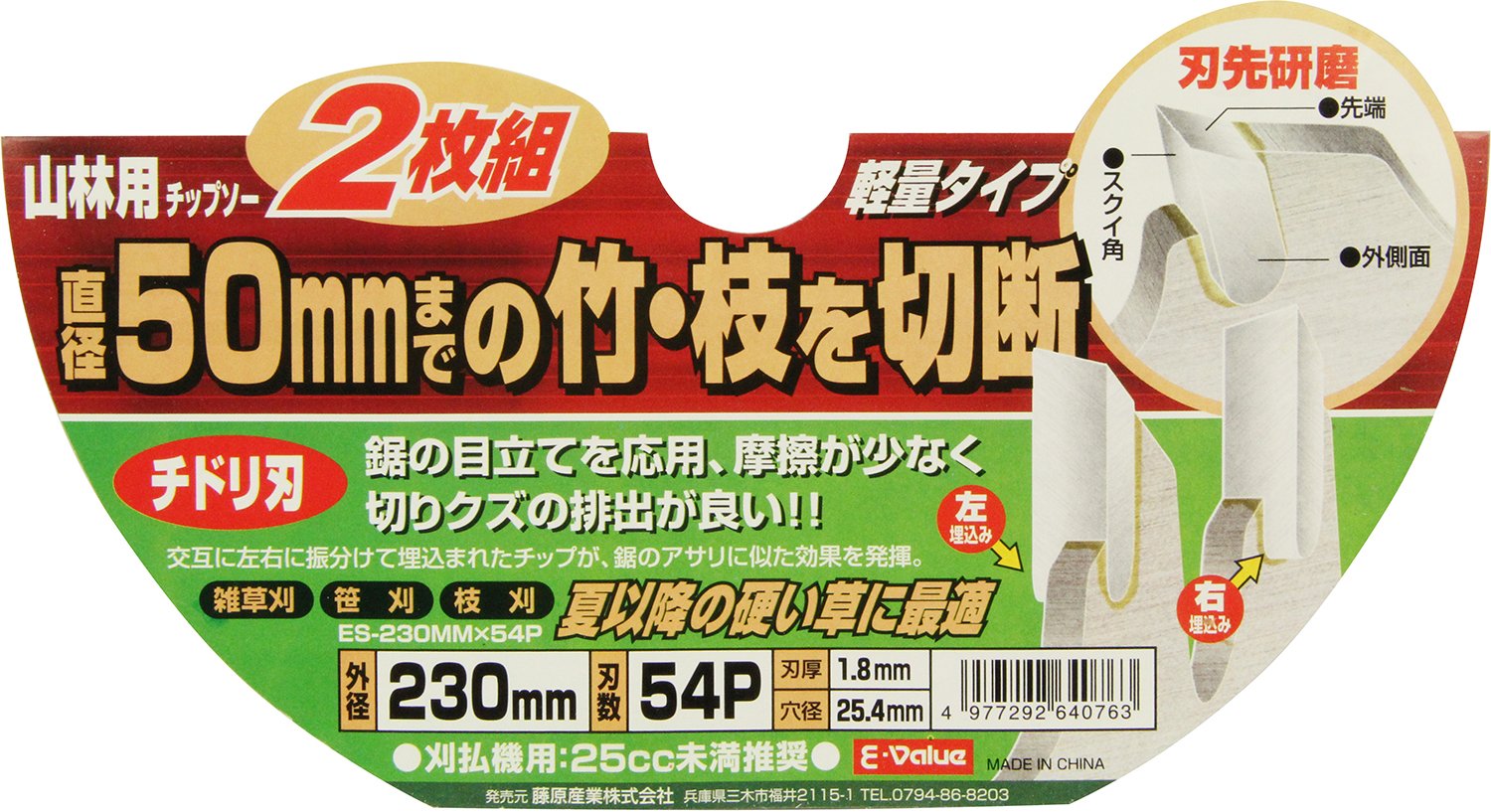 Cutting of bamboo and branches up to 50 mm in diameter is possible