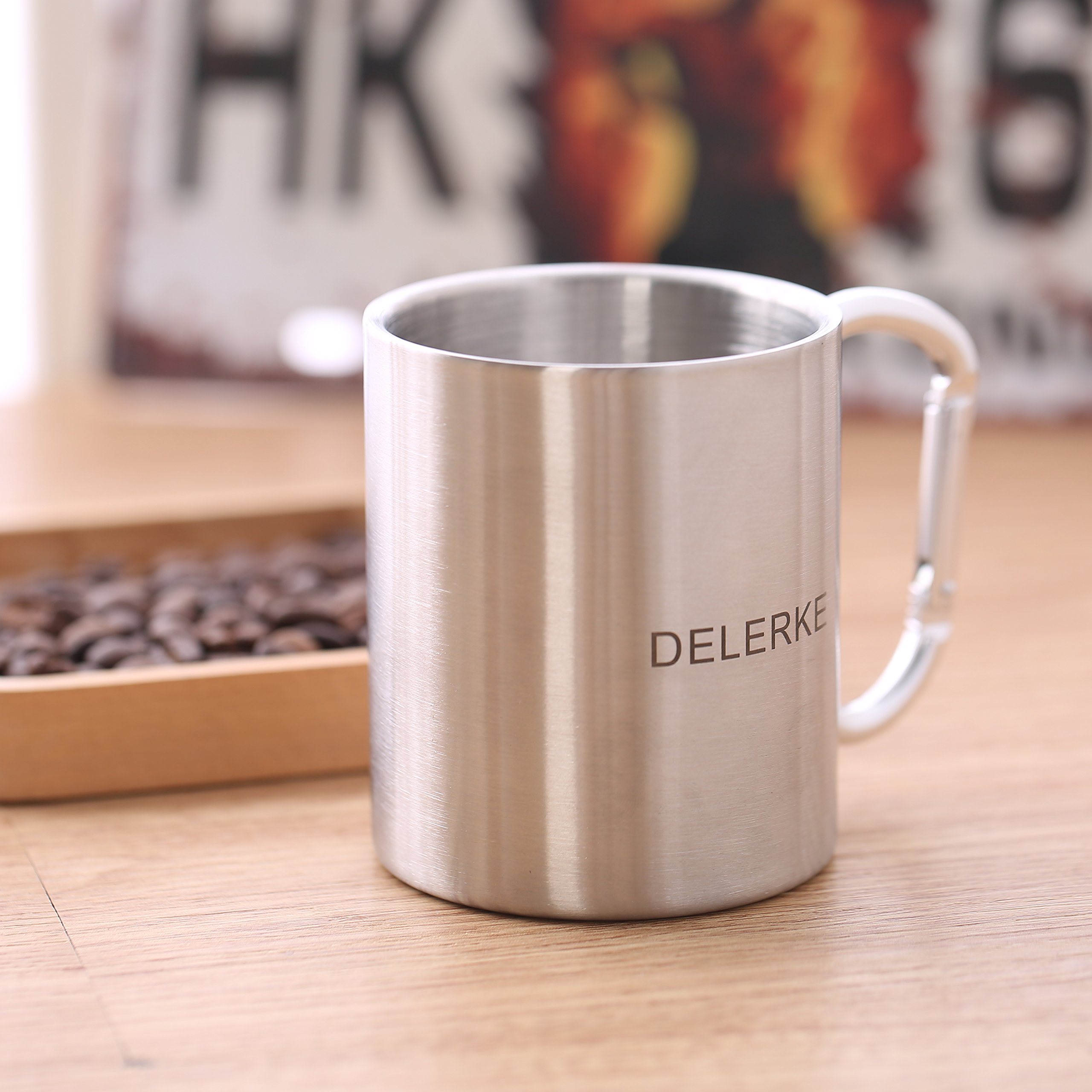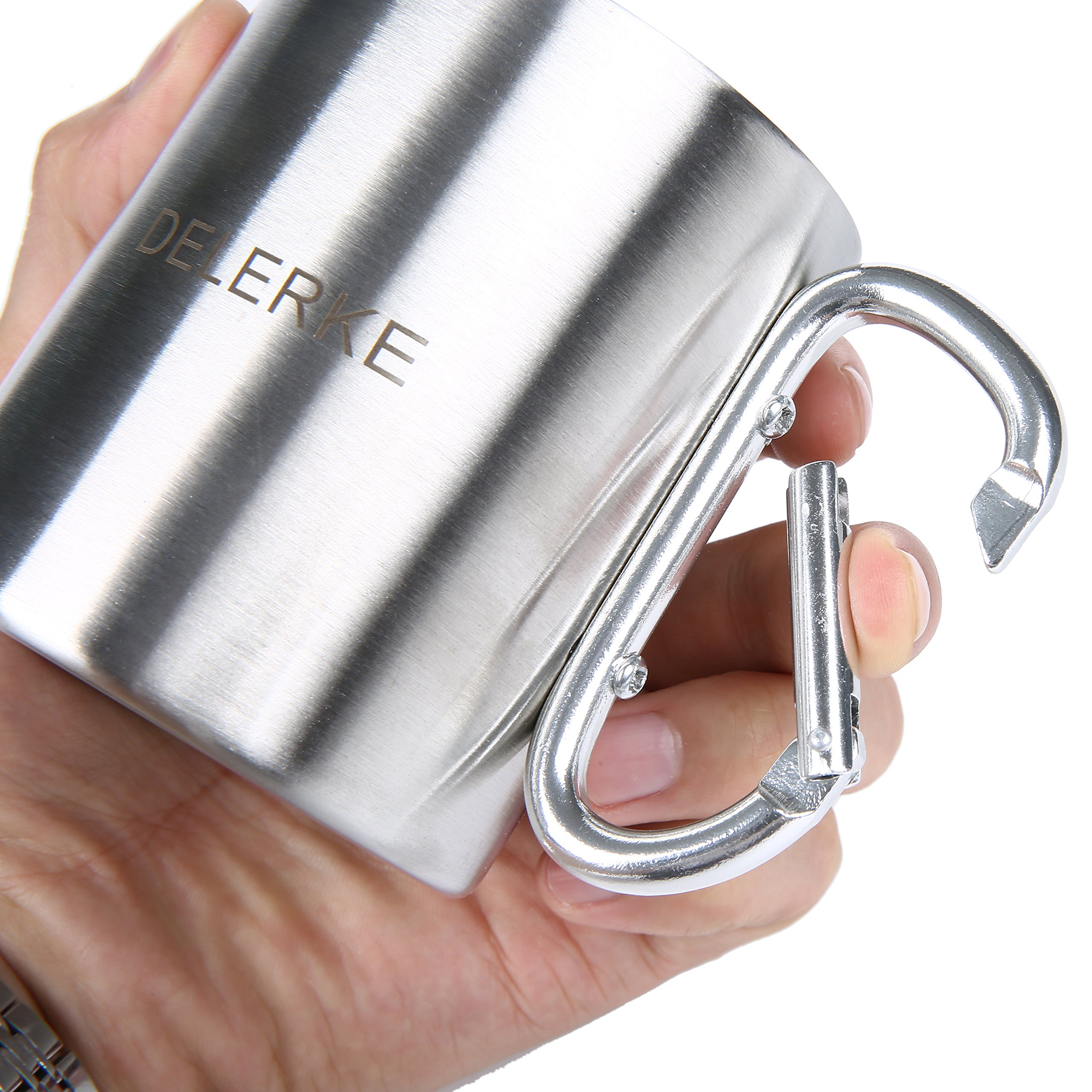 This high quality, high quality stainless steel camping cup has a unique carabiner handle, you can save space and put the cup outside the rucksack.