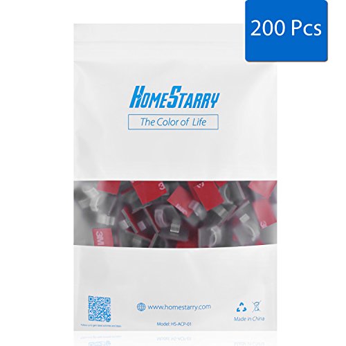 200 Pcs Homestarry Adhesive Cable Clips Wire Clips Cable Wire Management Wire Holder Cable Clamps Cable Tie Holder for String Lights, Car, Office and Home