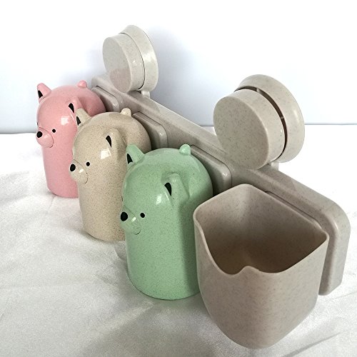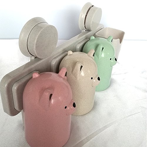 E-forest hair Toothbrush Holder Set With 3 cute pig Cups+ 1 cup,Wall Mounted Electric Toothbrush Storage Set