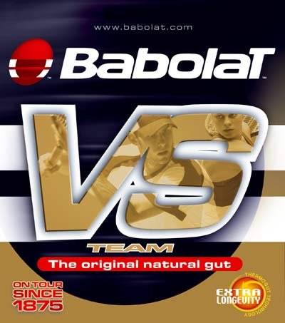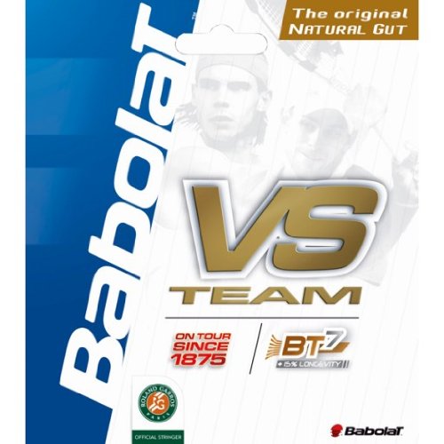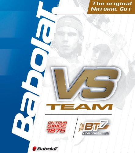 Studio : Babolat Publisher : Babolat Binding : Misc. Product Description Babolat VS Team Natural Gut Tennis String New Thermogut Technology makes the strings more durable and more humidity resistant. For players whose style is almost at the competitive level, who use standard or medium-size rackets and are looking for performance or resistance. Natural gut with Thermogut Technology. The reference for elasticity, tension hold and ball touch. 50% of the top 100 ATP players rely on its performance. Length: 40 feet / 12 meters Gauge: 17gauge / 1.25mm Color: Natural 0
