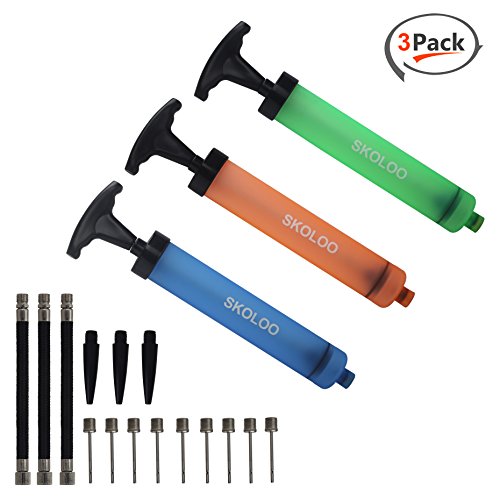 - PRACTICAL AND GUARANTEED ACCESSORIES: Comes with 9 metal pin needles/3 removable and flexible rubber hose/3 plastic tapered nozzle. Highly recommend you to use the flexible rubber hose and a pin needles to pump up any sport balls, Soccer Basketball Footba Volleyball Water Polo ball Rugby Netball Gym Ball Yoga ball, you can inflate them in different angles and thus prevent your ball needle broken into the ball because of the improper operation.n.