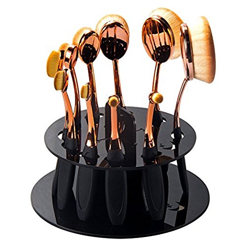-. Title : Oval Brush Holder - 10 Hole Black Acrylic Toothbrush Makeup Brushes Shelf Cosmetic Brush Drying Rack Organizer Cosmetic Tool