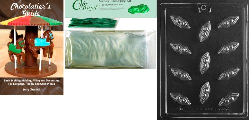 Cybrtrayd MdK50GRBk-F115 BS Peas in a Pod Fruits and Vegetables Chocolate Candy Mold with Chocolatier's Bundle, Includes 50 Cello Bags, 50 Green Twist Ties and Chocolatier's Guide