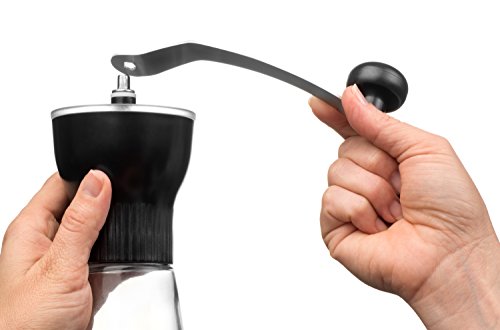SMALL, LIGHT & QUIET perfect for up to 2 coffee drinkers while camping, traveling or at the office. Ergonomically designed manual crank handle detaches from grinder for compact storage