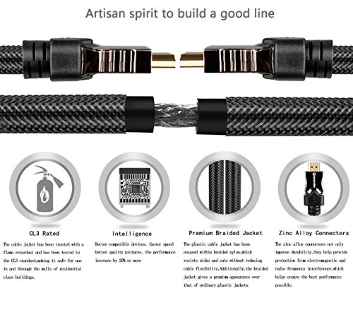 High-Speed HDMI Cable features 24K gold-plated, 99.996% and high purity oxygen-free copper, corrosion-resistant connectors that deliver optimal signal transfer with lower distortion at the point of contact. Ultra-high speed lossless audio and video transmission,This dedication to the digital signal provides sound and picture quality that is truer to the original. high quality PVC, Tough braided exterior outer layer and shielding, purity of the digital signal and longer service life.