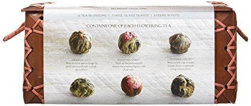 Gift Sets includes 6 Flowering Tea Blossoms; 1 16 ounce Glass Teapot; and an Elegant Unique Bamboo Case. Steeps 18 pots or servings.