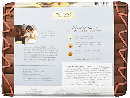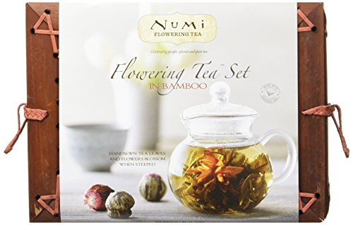 Numi Organic Tea Flowering Gift Set in Handcrafted Mahogany Bamboo Chest: Glass Teapot & 6 Flowering Tea Blossoms