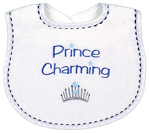 -. Feature : Embroidered "P.R.Ince Charming" / Trimmed with royal ric rack / For boys only / Measures 9" across by 11" from top to bottom / Machine washable/tumble dry