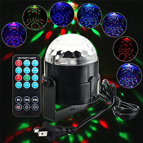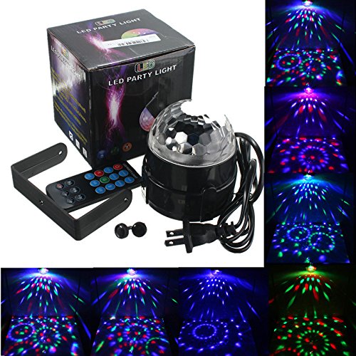 Kingso Dj Lights Sound Activated Party Light Disco Ball Mini Rotating Magic Strobe Club lighting Effect Led Stage Lights Par With Remote For Christmas KTV Xmas Wedding Show Pub - RGB 3W 7 Color