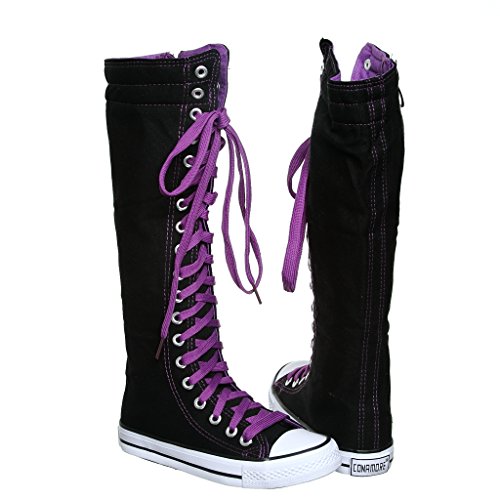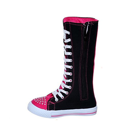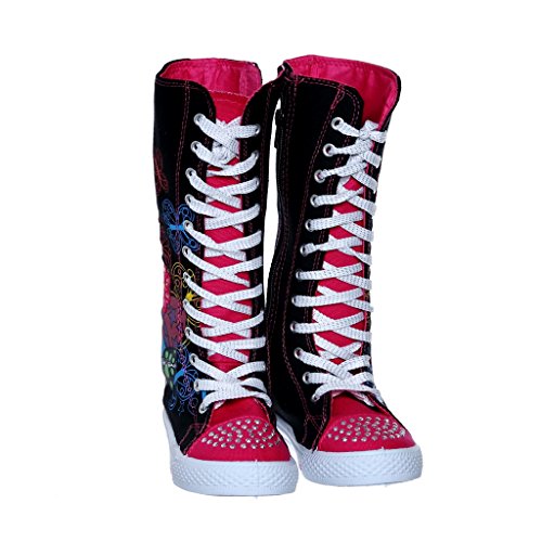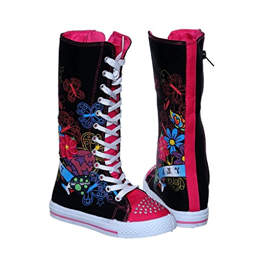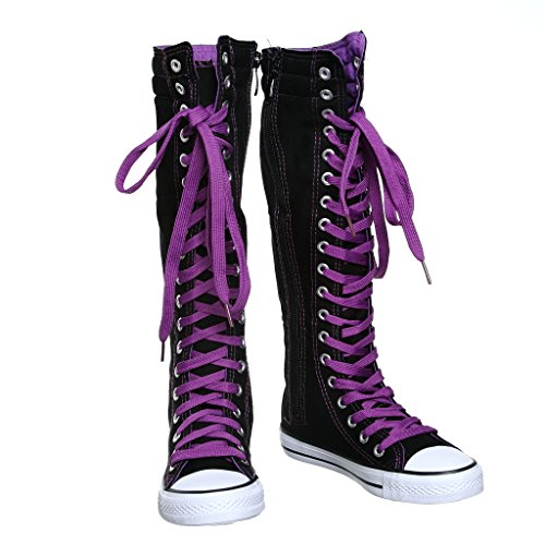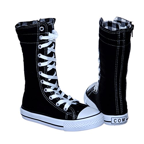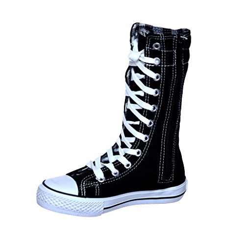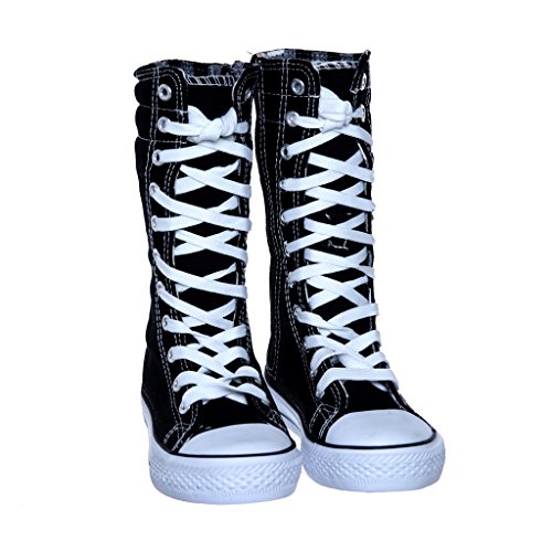 -. Binding : Apparel -. Brand : SWE -. Color : Black -. Department : girls -. Feature : side zipper / manmade / KID SIZE -. ProductGroup : Shoes -. ProductTypeName : SHOES -. Title : NEW Canvas Sneakers Flat Tall Punk Skate Shoes Lace up Knee High Boots FOR KIDS …