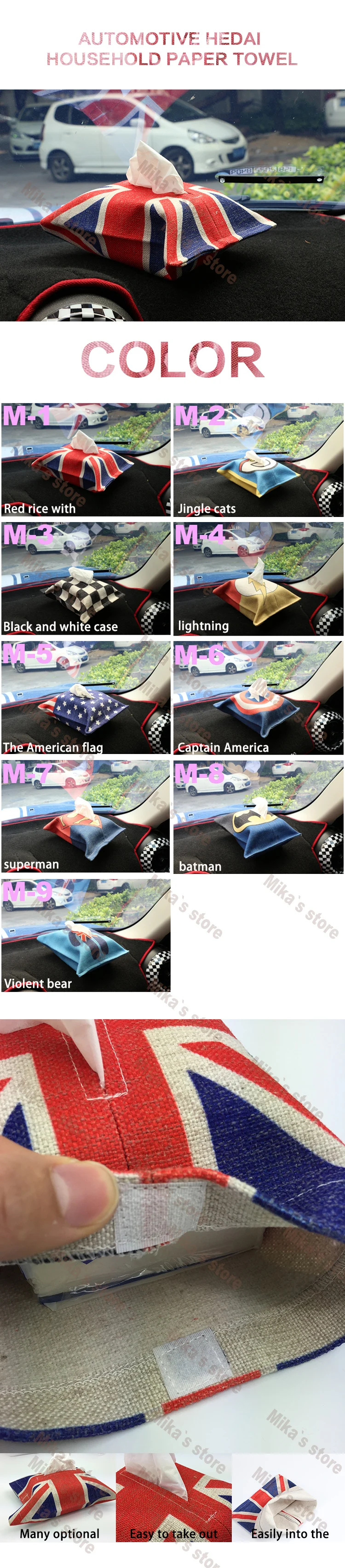 Item Type:Nets Model Name:YX-049 Special Features:Place paper towels Item Weight:0.02kg Brand Name:MANG JIANG Item Width:19cm Item Length:24.5cm Material Type:Linen Applicable car model:MINI Cooper Color Classification:M1-M9 Installation location:Anywhere
