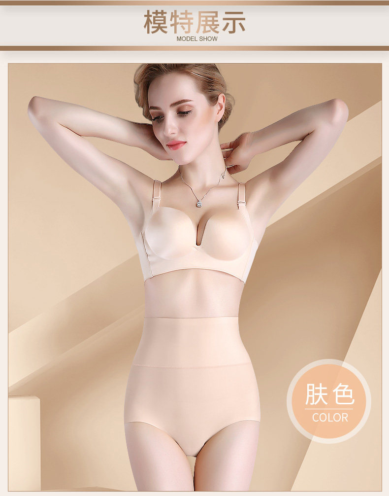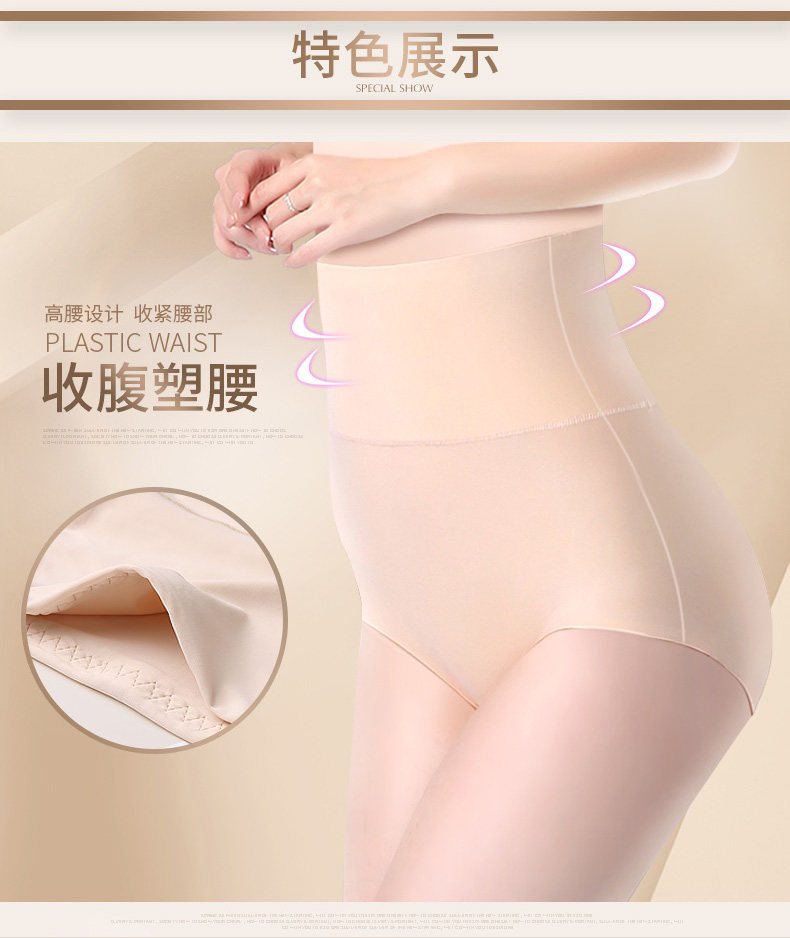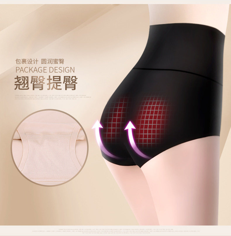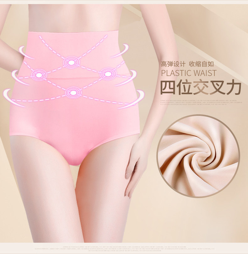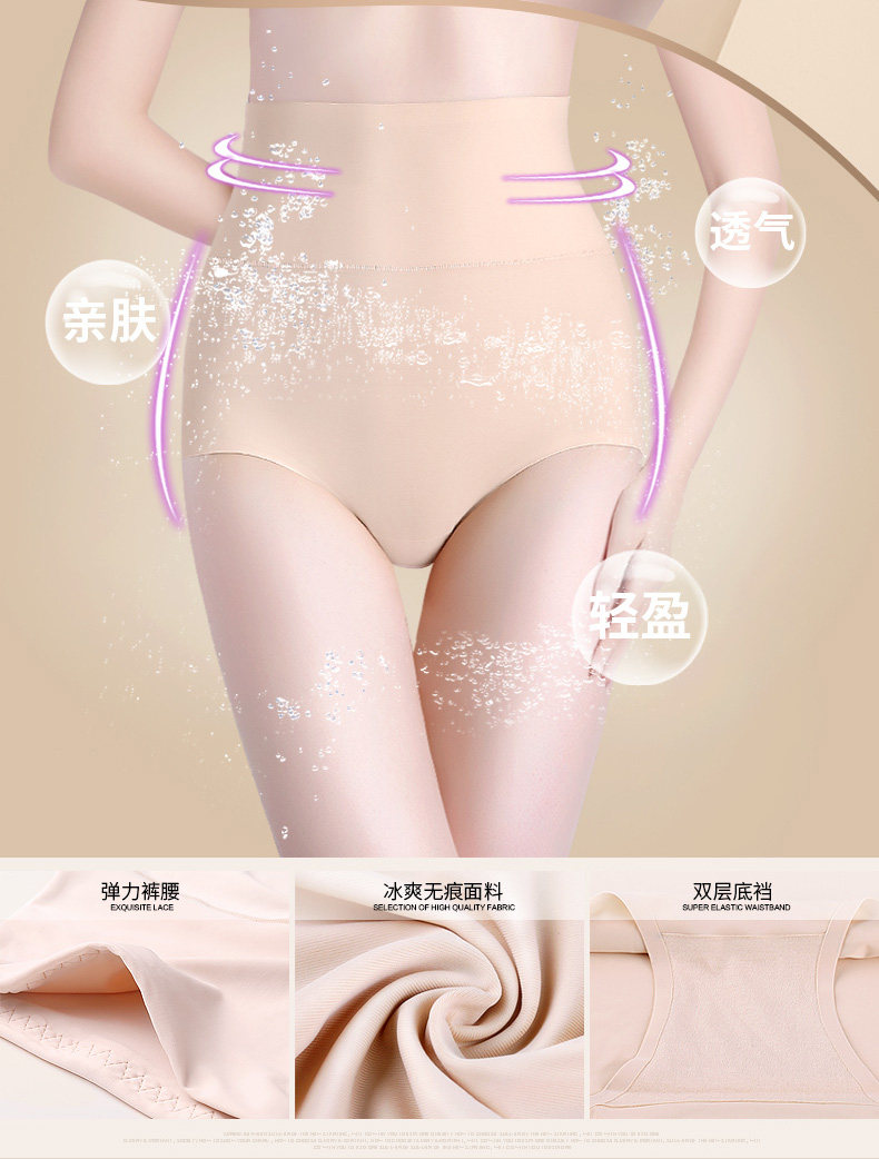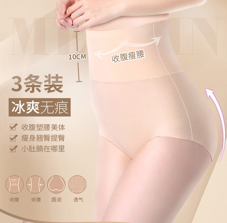 3条 一片式无痕女内裤高腰收腹裤 纯棉裆夏薄冰丝女三角裤