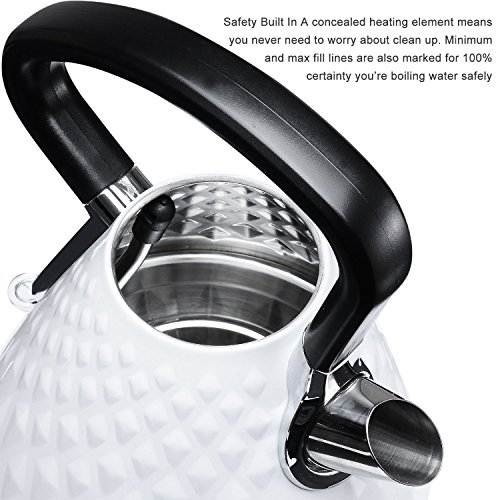 FAST BOILING - With an impressive 1500 Watts of heating power, this kettle will boil your water faster than a stove top kettle, and safer than a microwave.saving you time in the kitchen