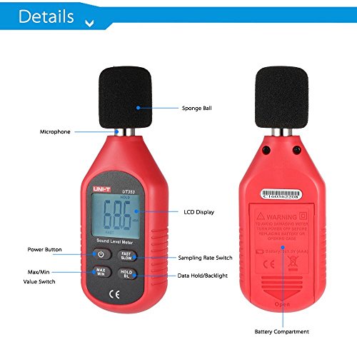 Signstek UNI-T UT353 Mini LCD Display Digital Sound Level Meter Noise Measuring Instrument Decibel Monitoring Tester 30-130dB used in factory, traffic, home audio and other places
