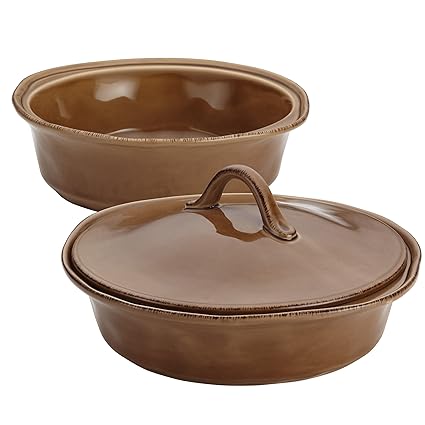 [Product Information]- The 1-1/2-quart and 2-quart round casseroles and lid are crafted from durable, solid stoneware and glazed with warm, earthy color