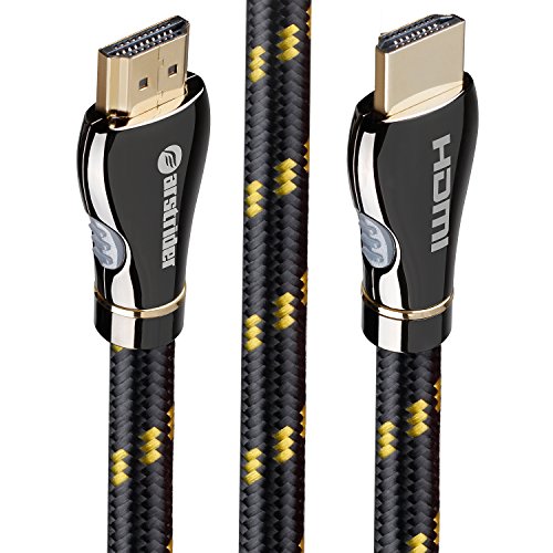 FARSTRIDER HDMI 2.0 Cable 25 Feet (8 Meters) High Speed, Supports Ethernet, 2160P, 4k, 3D, 24K Gold Connector, Zinc Metal Alloy Shielding Shell, Braided Cord, Gun Black/Gold Latest Version
