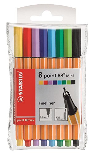 -. Feature : 8 pack Stabilo 88 mini pen set - water-based - 4mm metal tip - assorted colors / Metal encased tip is suitable for rulers and stencils / Hexagon shape for no-roll confidence / Dries quickly - Non-smudging - great for left-handers - odorless / Caps are ventilated for safety