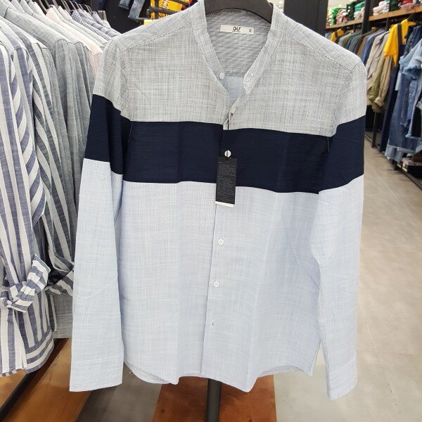 절개스텐가라 셔츠시원한 여름소재 포멀한형태로 슬랙스와 연출하면 오피스룩 캐주얼한 형태로 데님이나 슬랙스등어떤형태의 하의에도 스타일링가능