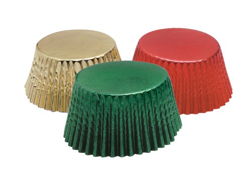 Fox Run 7102 Christmas Foil Bake Cup Set, Standard, 45 Cups, Green, Red & Gold