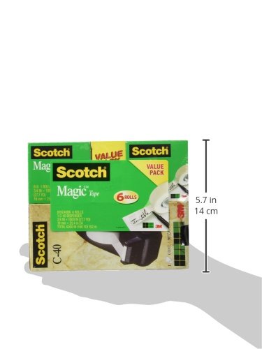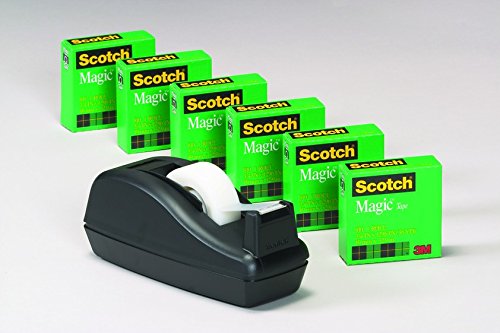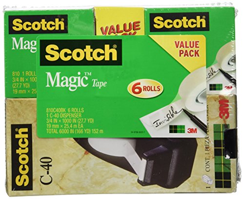 Scotch Magic Tape with C-40 Black Dispenser, 3/4 x 1000 Inches, 6 Rolls, 1 Dispenser (810C40BK)
