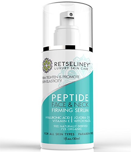 RETSELINEY PEPTIDE FACE & NECK FIRMING SERUM, BOOST COLLAGEN, LIFT LOOSE & SAGGING SKIN, TIGHTENS & SMOOTHES CHEST, VEGAN HYALURONIC ACID, VITAMIN E, ORGANIC & NATURAL, ANTI WRINKLE SERUM FOR SKIN