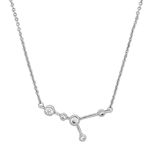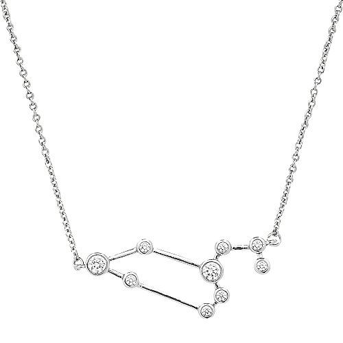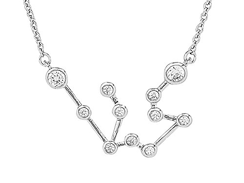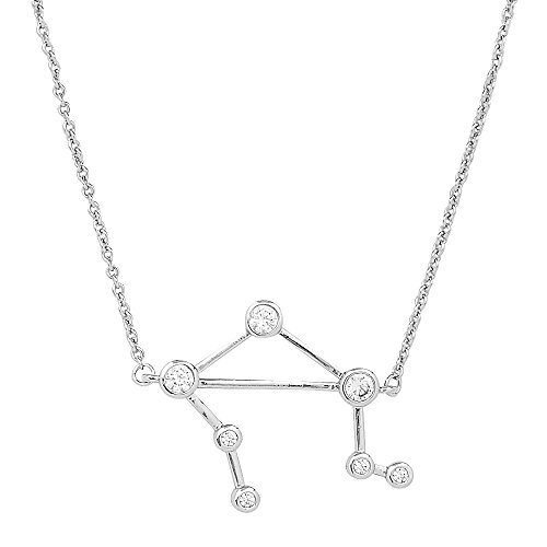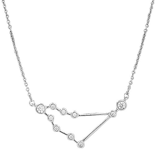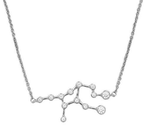 WOMEN'S JEWELRY: This women's rhodium plated zodiac necklace is incredibly stylish. Available in every zodiac, display your zodiac sign by wearing this necklace with any type of outfit. This constellation necklace is available in Aries, Taurus, Gemini, Cancer, Leo, Virgo, Libra, Scorpio, Sagittarius, Pisces, Aquarius, and Capricorn.