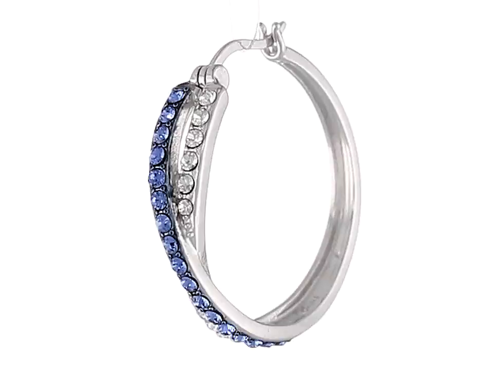 Sterling Silver Blue and White Swarovski Elements Crystal Crossover Hoop Earrings