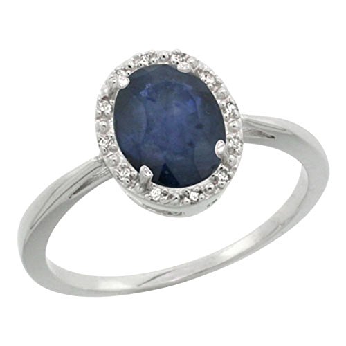 -. Title : Sterling Silver Natural Blue Sapphire Diamond Halo Ring Oval 8X6mm, 1/2 inch wide, sizes 5 10