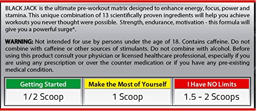 Black Jack is the ultimate pre-workout matrix designed to enhance energy, focus, power and stamina.Strength, endurance, motivation - this formula will give you a powerful surge.