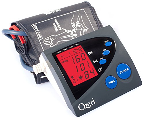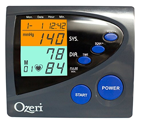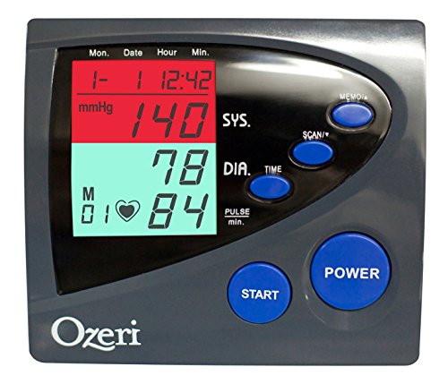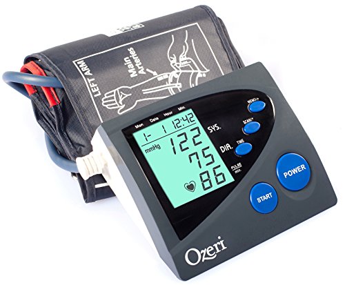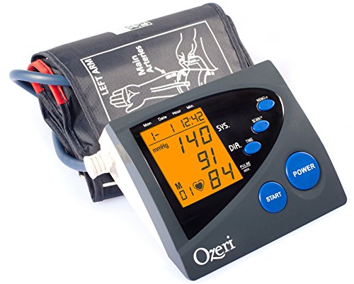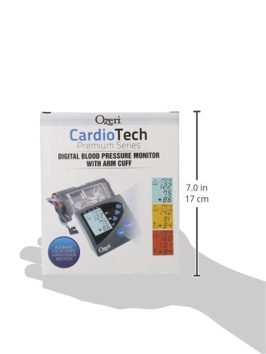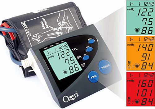 -. Binding : Health and Beauty -. Brand : Ozeri -. Color : White/Blue -. EAN : 0885372214534 -. Feature : Portable, accurate, and simple-to-use arm cuff design with clinically proven technology / Advanced Hypertension Indicator color codes the Systolic and Diastolic readings in green (normal), orange (prehypertension) and red (hypertension) / Stores 1197 blood pressure readings (399 x 3 users) with date and time recordings / Dynamic measurement technology varies the auto inflation based on real-time blood pressure detection to reduce measurement time and increase comfort / Automatic irregular heartbeat (Arrhythmia) detection and push-button access to average blood pressure readings -. IsAdultProduct : 0 -. Label : Ozeri -. Manufacturer : Ozeri -. Model : BP4M -. MPN : BP4M -. PackageQuantity : 1 -. PartNumber : BP4M -. ProductGroup : Health and Beauty -. ProductTypeName : HEALTH_PERSONAL_CARE -. Publisher : Ozeri -. Studio : Ozeri -. Title : Ozeri BP4M CardioTech Premium Series Digital Arm Blood Pressure Monitor with Hypertension Color Alert Technology -. UPC : 885372214534