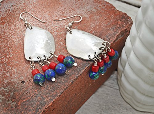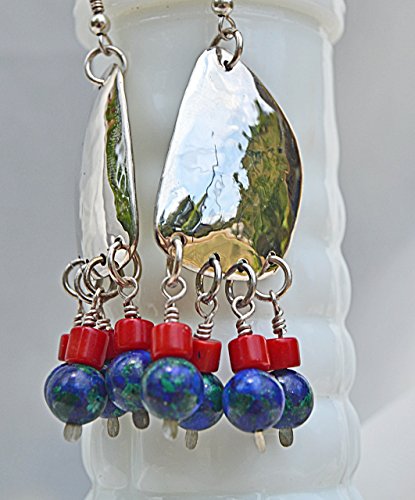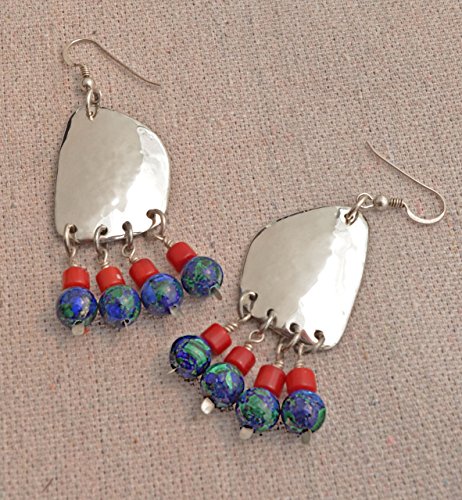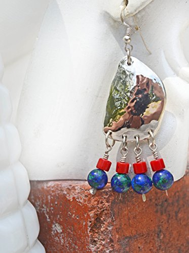 -. Title : Silver Azurite/Malachite Sculptural Drop Earrings
