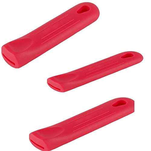 Bundle of 3 Red Silicone Handle Sleeves; 3 Sized of Pot and Skillet Handle Holders