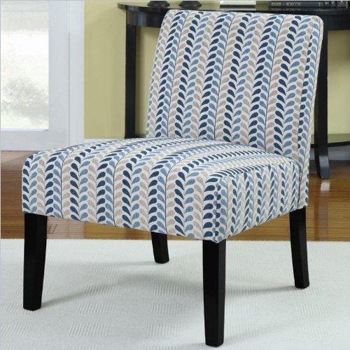 Studio : Coaster Home Furnishings Publisher : Coaster Home Furnishings Binding : Kitchen Product Description Additional seating is sometimes difficult to find if one is seeking something truly simple yet with a decorative edge. Introducing the contemporary armless accent chair. Designed to provide seating without being over-the-top in stylish adornments, this chair features a smooth frame construction with long tapered legs and clean upholstered cushions. The tight seat cushions are comfy and supportive with a sleek and modern style, creating a fine look of contemporary tailoring. Complete with a decorative upholstery for just enough accent, this chair's small frame and simple style allow it to be used on its own or in pairs. Dimensions: 28"W x 25"D x 33"H. 0