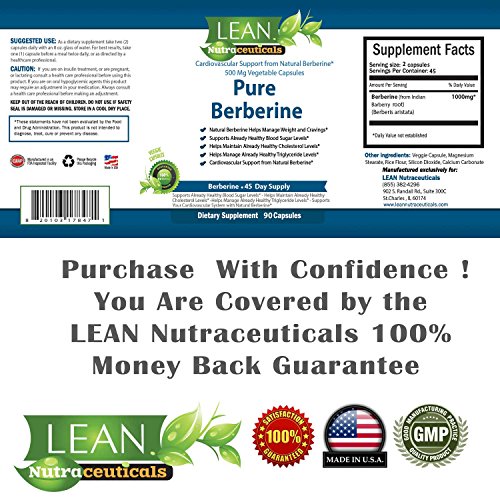 LEAN Nutraceuticals Berberine 500mg 90 Capsules MD Formulated Supplement For Healthy Blood Sugar and Cholesterol Support