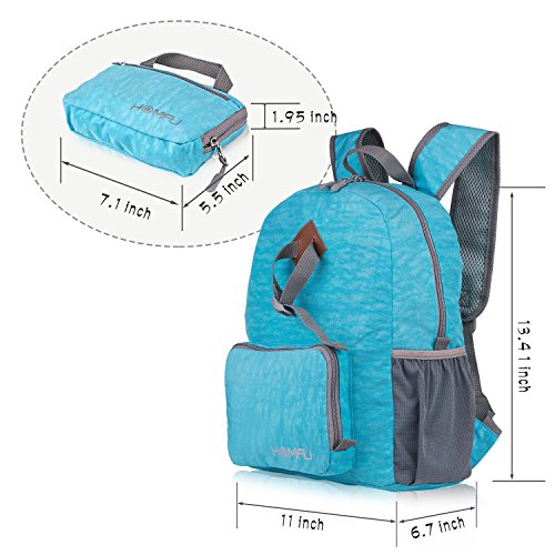 -. Feature : 【DURABLE & LIGHT WEIGHT】: The Homfu Foldable Backpack is made of 420D water resistant nylon fabric provides highly tear and long-lasting performance with ultralight weight. / 【BRIGHT COLOR】: Bright color match with fresh green plants outdoor, makes you feel fresh and young, Bright color is also easy to recognize in crowded places. / 【MULTIPLE COMPARTMENTS】: 2 side pockets for bottles, glasses etc, 1 down pocket on the bottom front side, up front side offer DIY design and hanging , 1 zippered pocket inside make things in order / 【BREATHABLE MESH SHOULDER STRAPS DESIGN】: Release the stress from the shoulder and make your journey more comfortable and relax. / 【MONEY BACK GUARANTEE】If you are not satisfied with our foldable backpack or service, you are able to get full refund guarantee within warranty time.