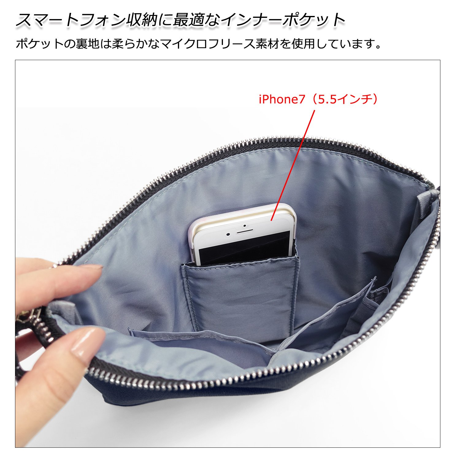 A smartphone can be stored in the open pocket which treated the microfleece on the lining.
