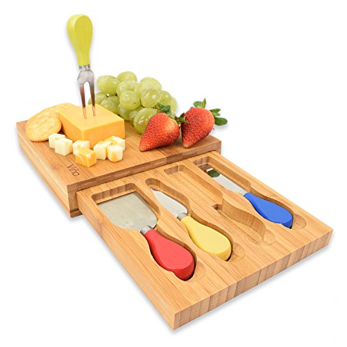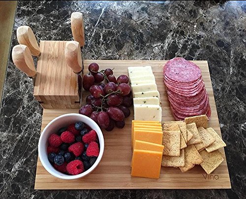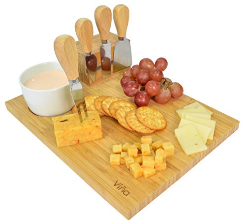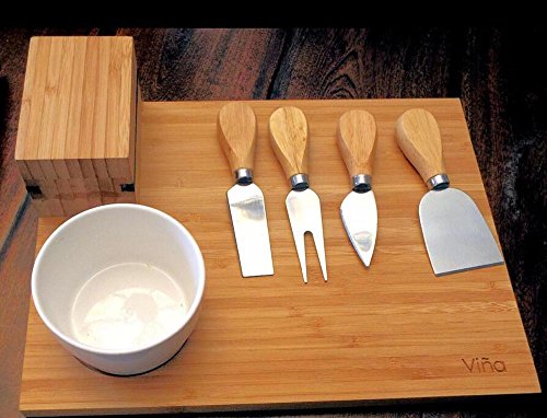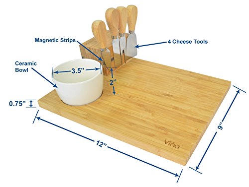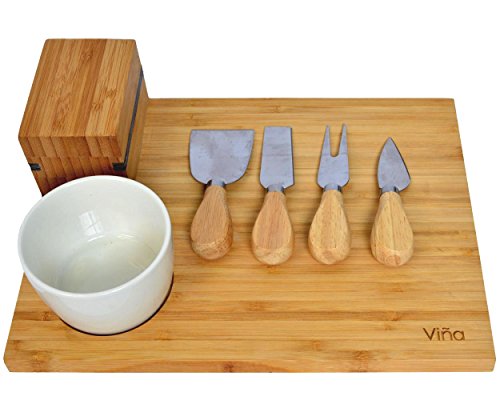 Features:•Vina® premium bamboo cheese board set with 4 pc cheese knives plus porcelain bowl perfect for slicing cheese.